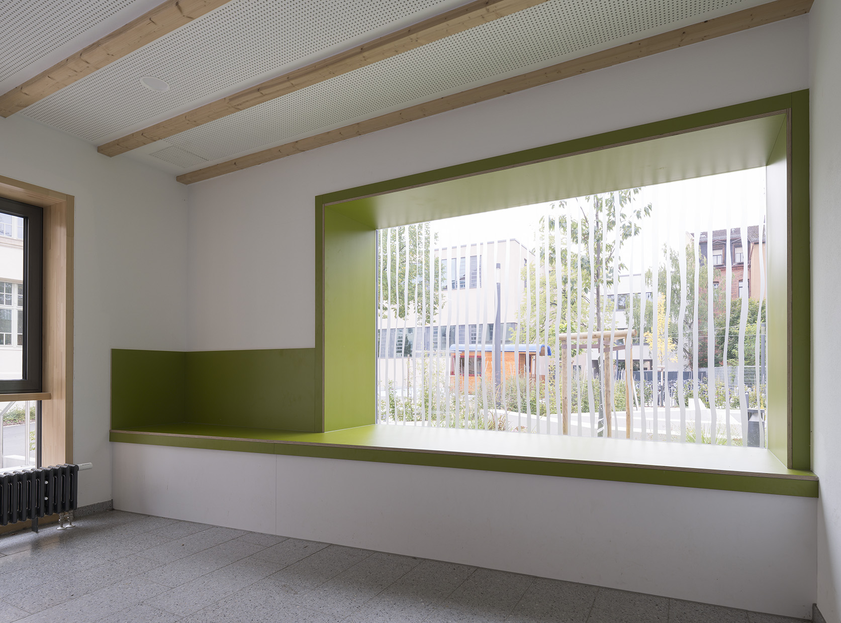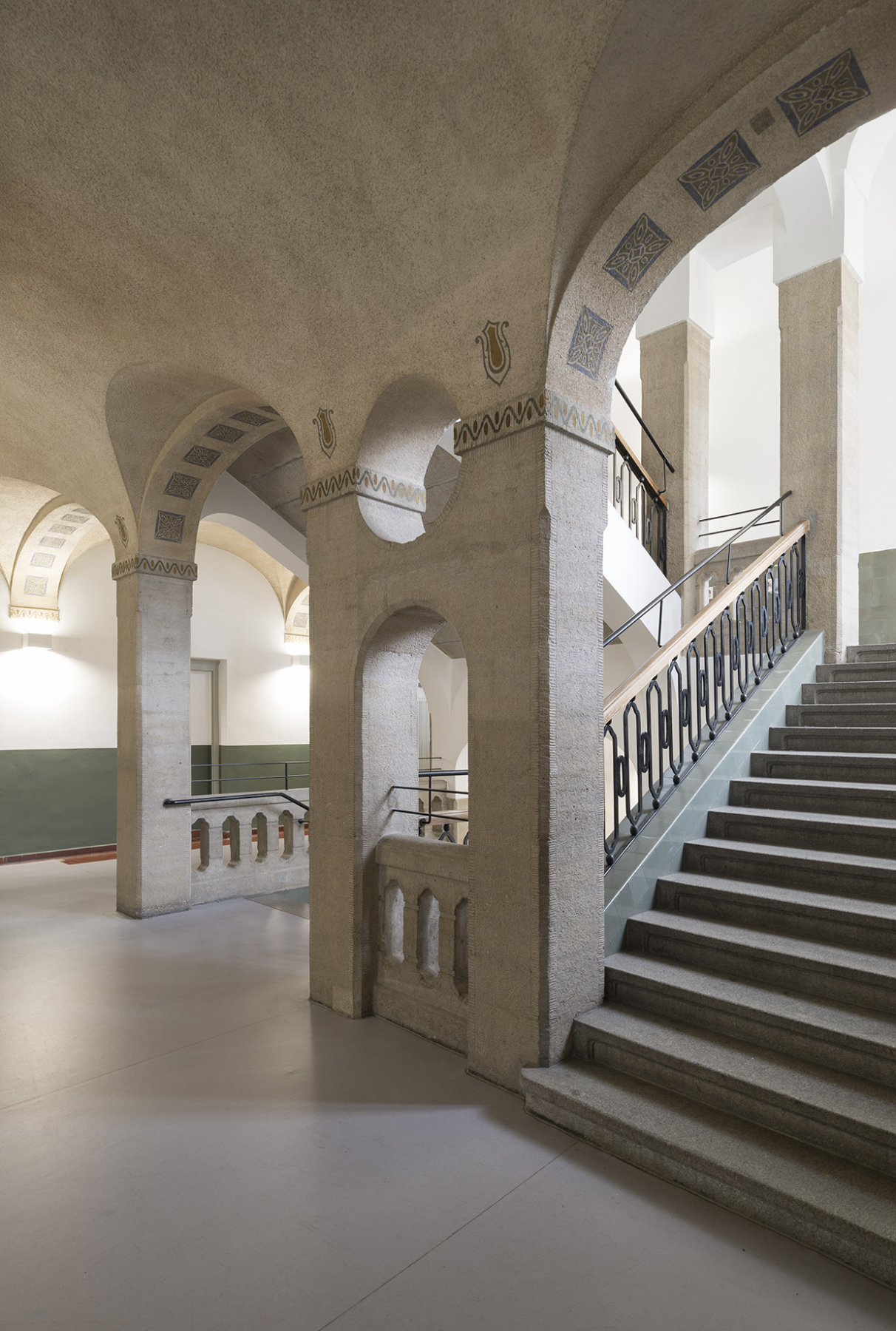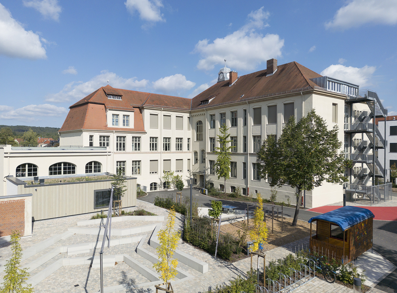 Die Umsetzung dieser Generalsanierung eines historischen Gebäude erfolgte bei laufendem Schulbetrieb unter Berücksichtigung bauhistorischer Merkmale wie z. B. Holzfenster und Sandsteinfassade.