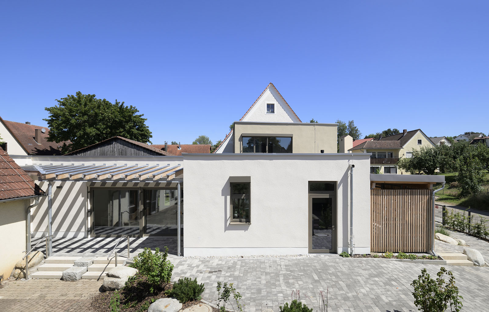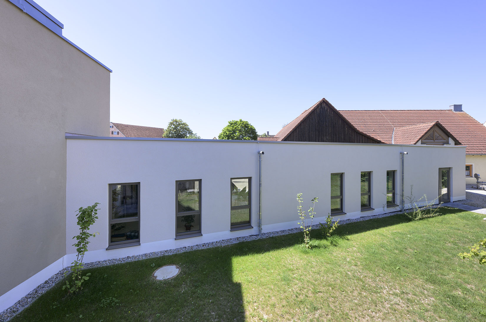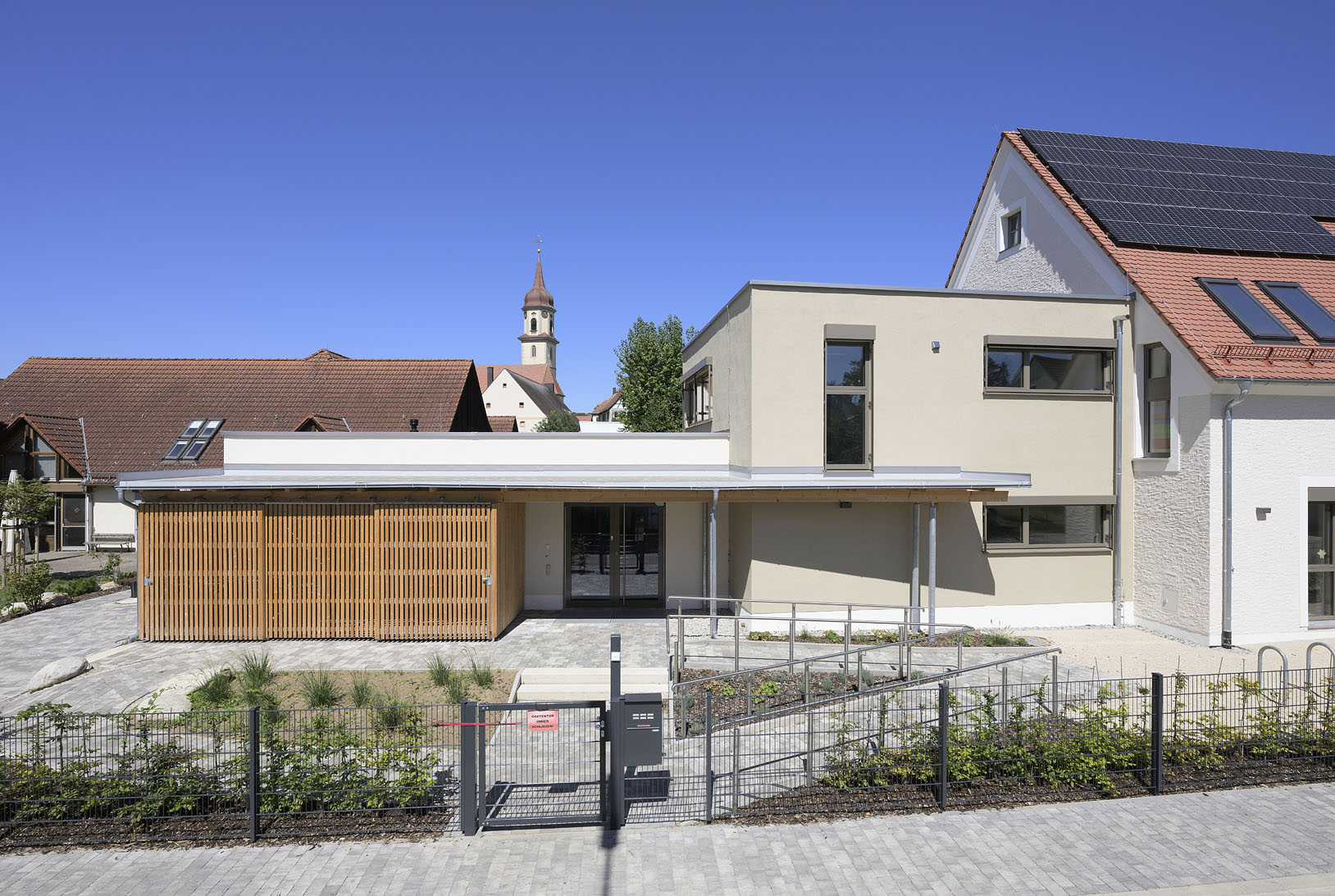 Der Sonderbau der Gebäudeklasse 4 für die Gemeinde Röckingen umfasst den Neubau der Kindertagesstätte mit Zwischenbau als Erweiterung an das bestehende Rathaus und dessen Umbau.
