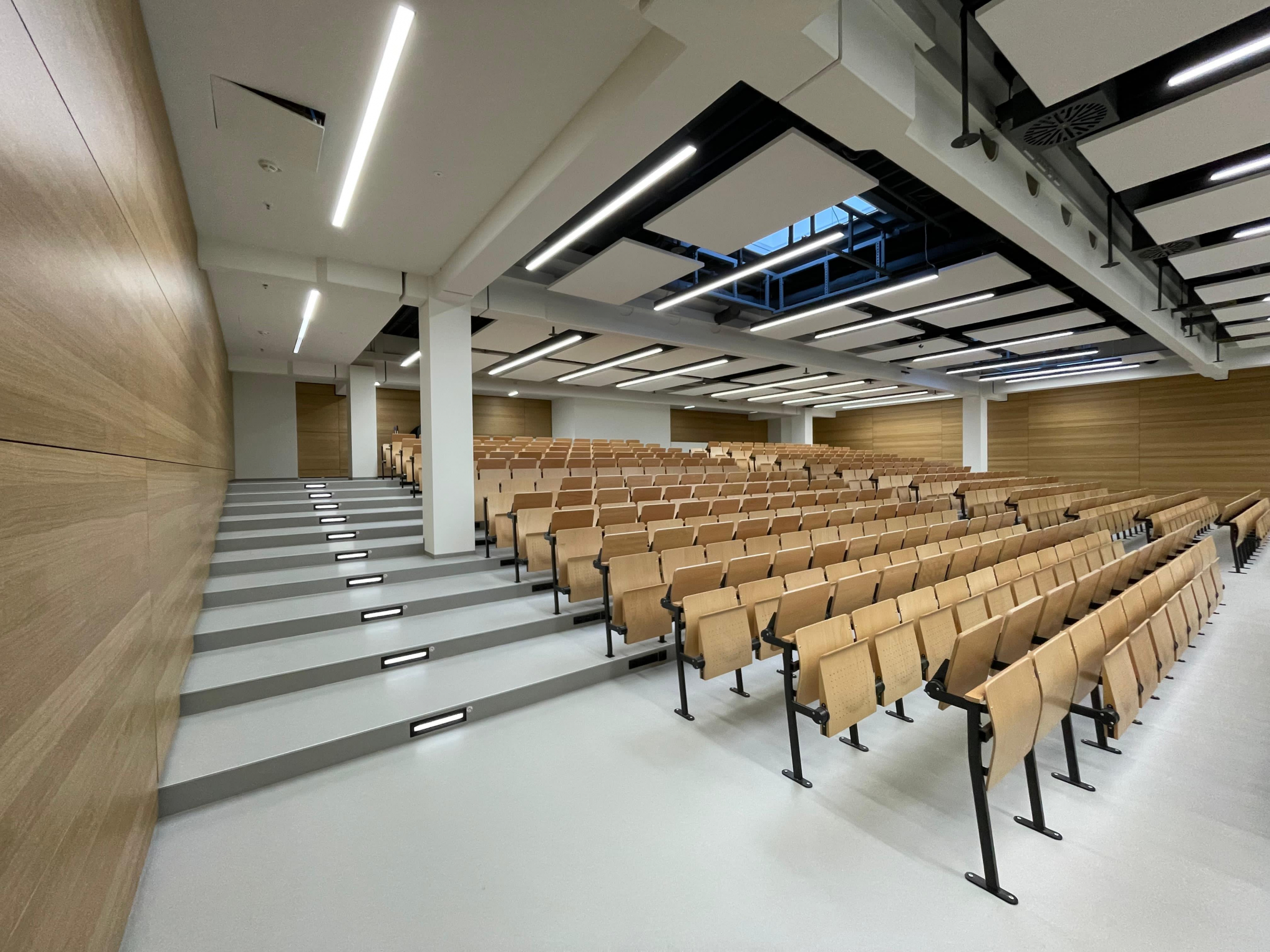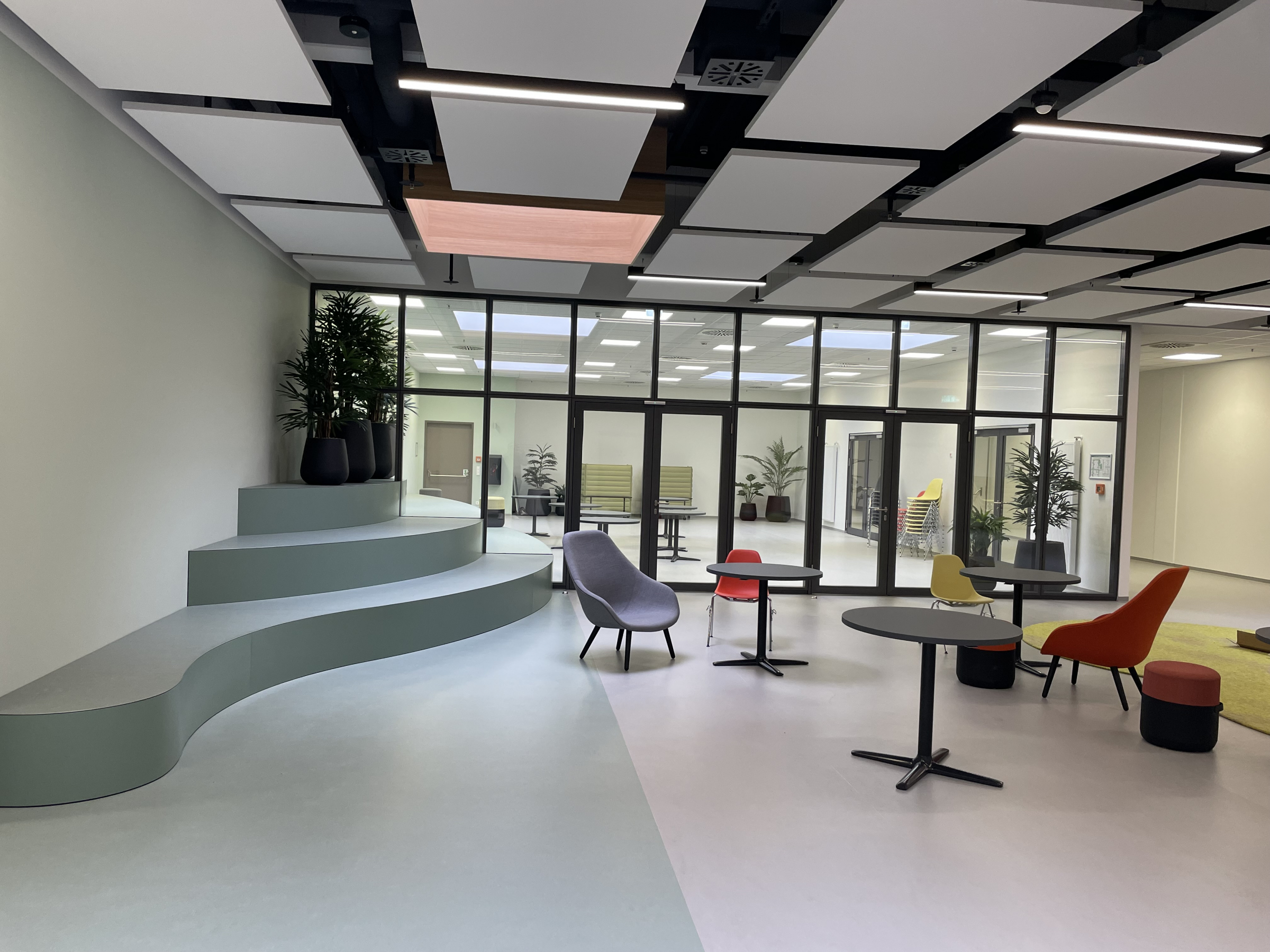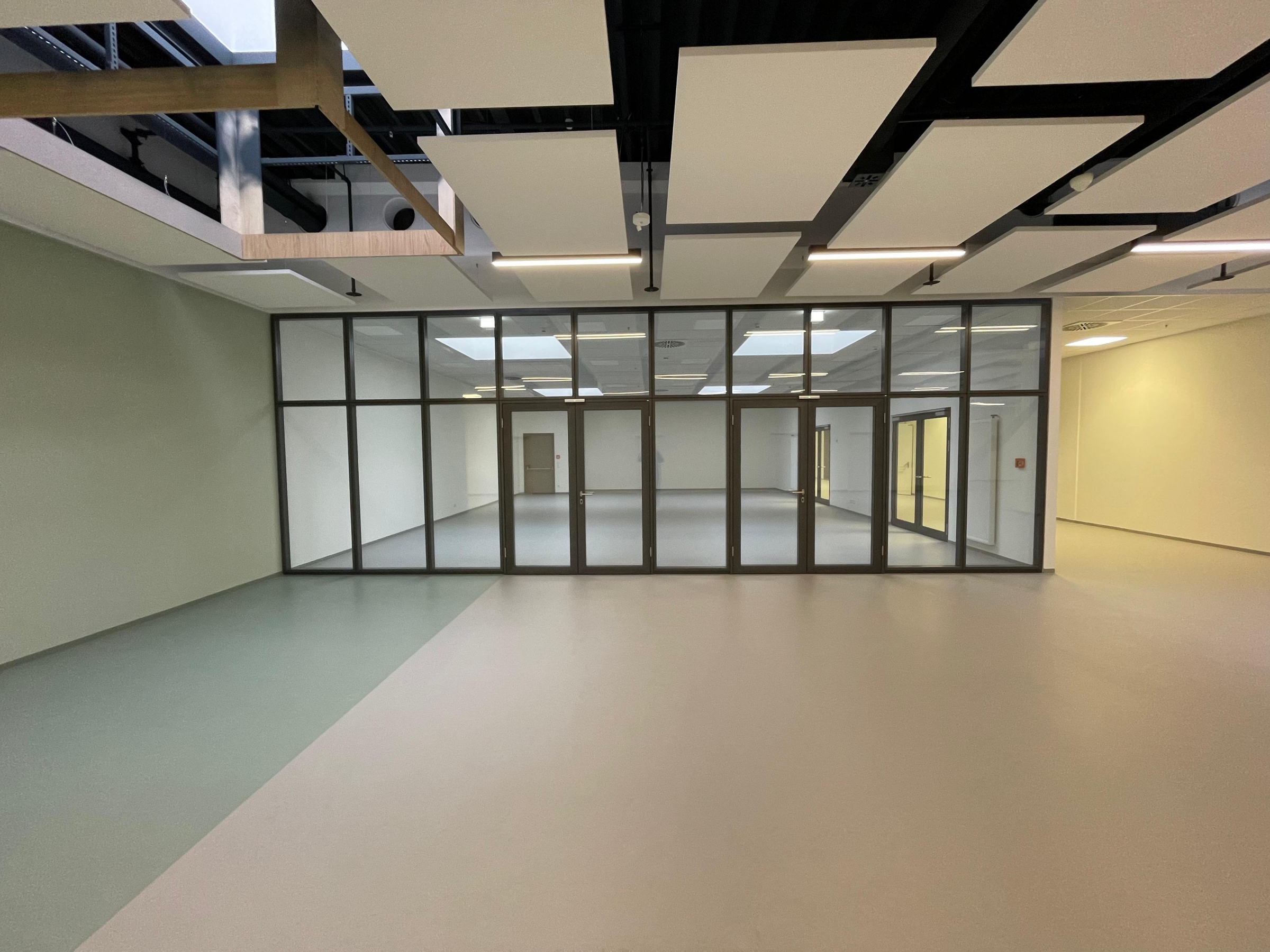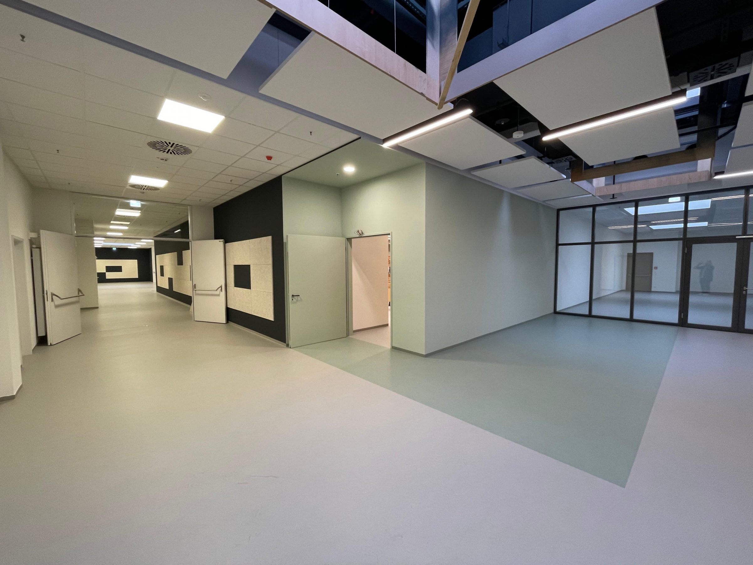 Die ehemaligen Verkaufs-, Lager- und Büroflächen im 1. OG des Brückencenters in Ansbach wurden hier zur Ausbildungsstätte für die Hochschule Ansbach umgebaut. Zusätzlich wurden zwei neue Treppenhäuser und eine Verbindungsbrücke zur nebenan gelegenen Hochschule errichtet.